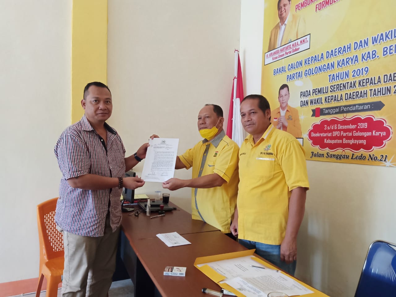 triggernetmedia.com – Bakal Calon Bupati Kabupaten Bengkayang Tahun 2020 Sebastianus Darwis menyampaikan Surat Rekomendasi sementara DPP Partai Golkar ke DPD Golkar Kabupaten Bengkayang, Kamis (26/3/2020). Penyampaian Surat Rekomendasi sementara DPP Partai Golkar ke DPD Golkar Kabupaten Bengkayang itu disampaikannya sekira pukul 11.15 WIB.