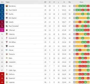 Klasemen La Liga Spanyol 2019/2020