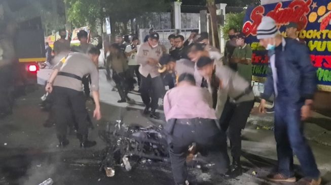 Aksi unjuk rasa ricuh hingga malam dan buntut aksi satu motor dinas polisi dibakar massa di depan Universitas Jambi di kawasan Telanaipura dimana kerusuhan sampai ke sana.