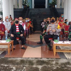 triggernetmedia.com – Pemerintah Kabupaten Landak melaksanakan upacara secara terbatas memperingati Hari Ulang Tahun (HUT) Ke-64 Pemerintah Provinsi Kalimantan Barat. Adapun peserta upacara tersebut terdiri dari perwakilan Organisasi Perangkat Daerah (OPD) Kabupaten Landak dengan menggunakan pakaian adat nusantara yang dilaksanakan di halaman Kantor Bupati Landak yang diikuti oleh unsur TNI, Polri, Instansi Vertikal, Tokoh masyarakat, Tokoh adat dan Tokoh agama, pada Kamis (28/1/2021).