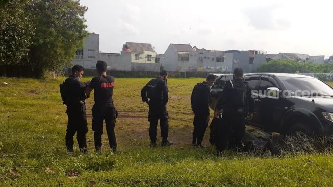 Tim Gegana saat meledakan barang bukti yang disita di lokasi terduga teroris di Condet, Jaktim. (Suara.com/Yaumal)