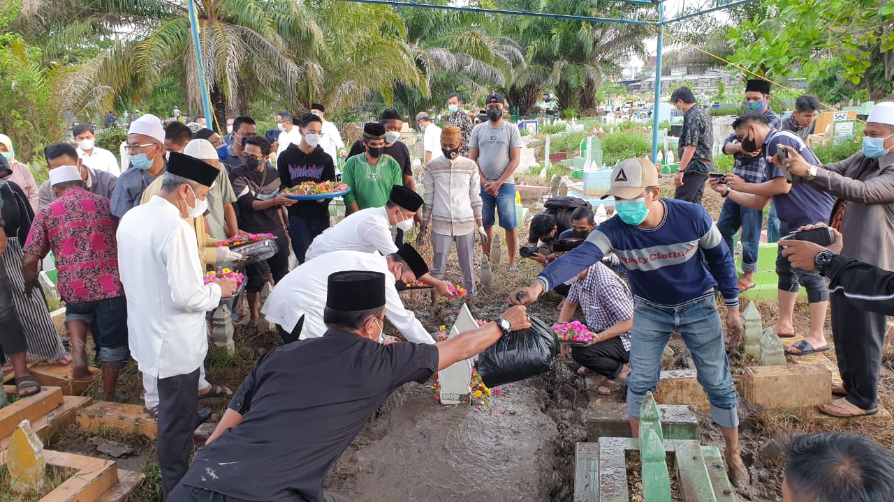 Tabur bunga : Wali Kota Pontianak, Edi Rusdi Kamtono menaburkan bunga di pusara ibunda tercinta Gubernur Kalbar dan Sekda Kota Pontianak. Hj Djaedah binti Said Lajim tutup usia pada Sabtu (17/4/2021).