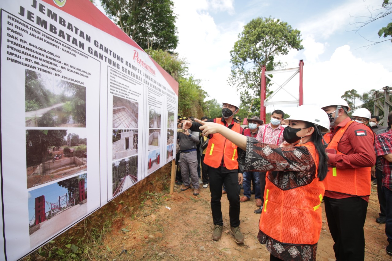 triggernetmedia.com – Bupati Landak, Karolin Margret Natasa meresmikan 4 jembatan gantung besi di Desa Kampet, Desa Sungai Kelik, Desa Angkangin dan Desa Sekendal, Kamis (29/4/2021). Peresmian infrastruktur bagi masyarakat itu terpusat di Desa Kampet dan dilakukan secara simbolis.