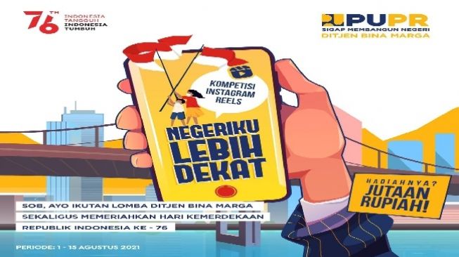 Kendati demikian, bukan berarti kita tidak bisa merayakan HUT ke-76 RI dengan meriah selama di rumah saja. Direktorat Jenderal (Ditjen) Bina Marga Kementerian Pekerjaan Umum dan Perumahan Rakyat (PUPR) menghadirkan lomba video reels instagram bertajuk “Negeriku Lebih Dekat”.