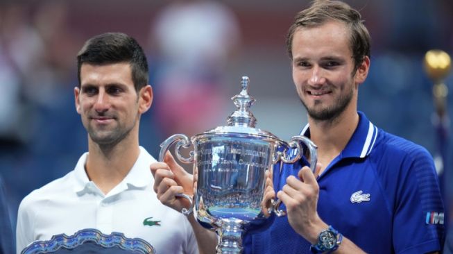 Dalam pertandingan di Arthur Ashe Stadium, Daniil Medvedev mengalahkan Nova Djokovic dengan skor 6-4, 6-4, 6-4.