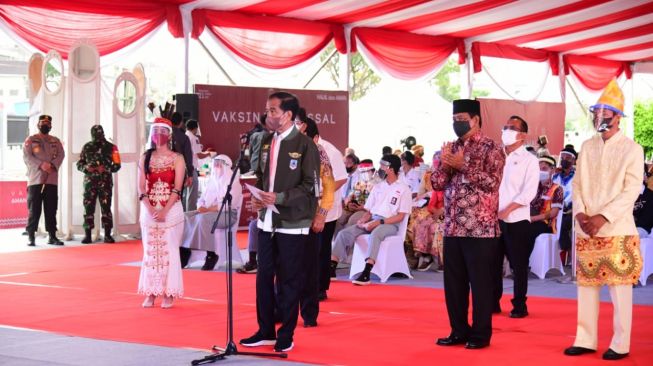 Karena itu, Jokowi pun meminta jajaran pemerintah daerah setempat bekerja sama dengan Polres dan Kodim untuk mempercepat vaksinasi agar dapat memberikan perlindungan maksimal kepada masyarakat.