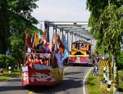 Bupati Kapuas Hulu mengikuti pawai mobil hias pada Peringatan Hari Jadi Kota Putussibau. Rabu (1/6/2022).