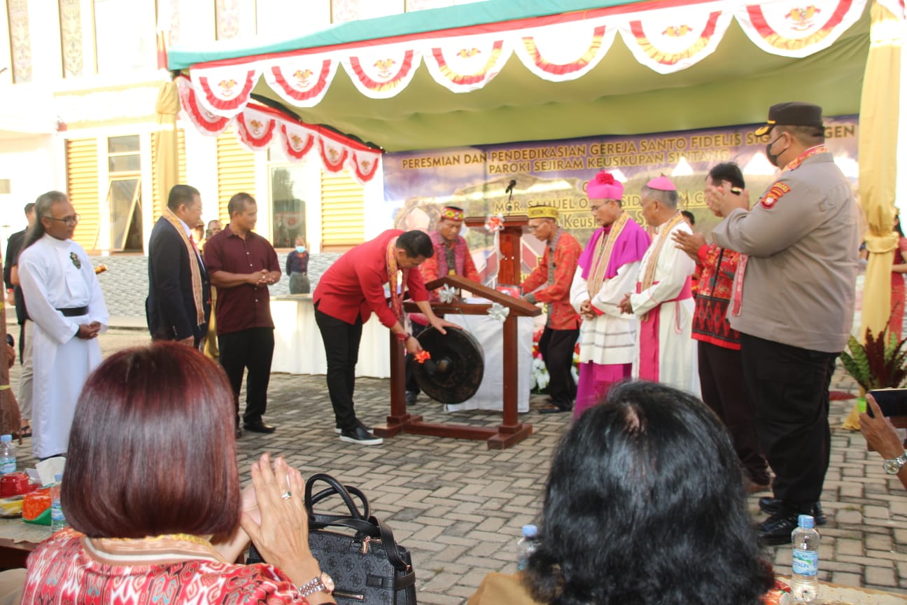 Bupati Sis uga mengapresiasi seluruh pihak yang telah membantu dalam pembangunan hingga peresmian Gereja Santo Fidelis Sigmarigen Paroki Sejiram Kecamatan Seberuang itu.