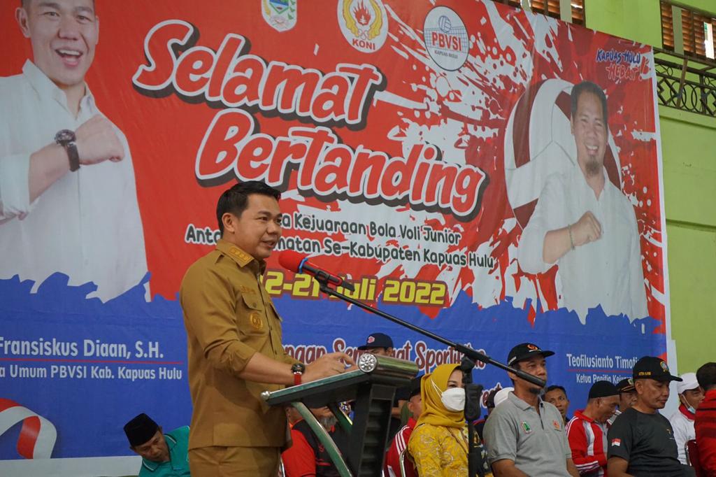 Bupati Kapuas Hulu, Fransiskus Diaan membuka Open turnamen Voli Junior Antar Kecamatan Se-Kapuas Hulu. Selasa (12/7/2022).