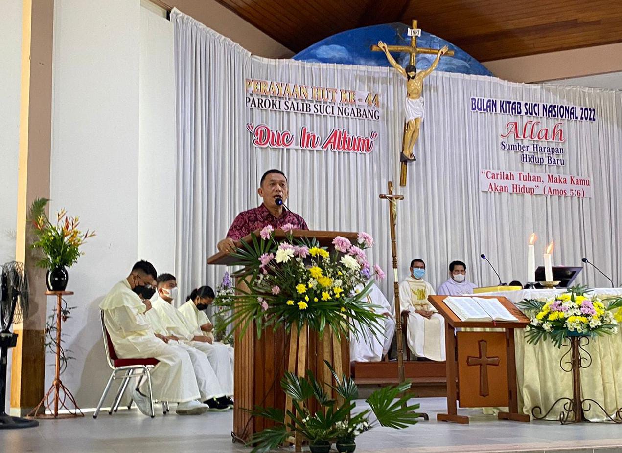Dalam kesempatan tersebut Sekda Landak Vinsensius menyampaikan atas nama Pemerintah Kabupaten Landak selamat Hari Ulang Tahun yang Ke-44 Paroki Salib Suci Ngabang.