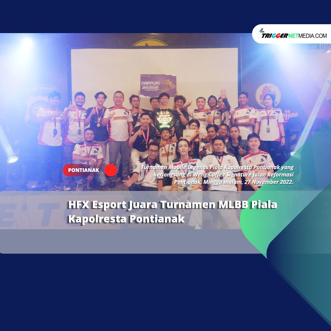 triggernetmedia.com – HFX Esport resmi keluar sebagai juara Turnamen Mobile Legends Piala Kapolresta Pontianak yang berlangsung di Weng Coffee Signature Jalan Reformasi Pontianak, Minggu malam, 27 November 2022.