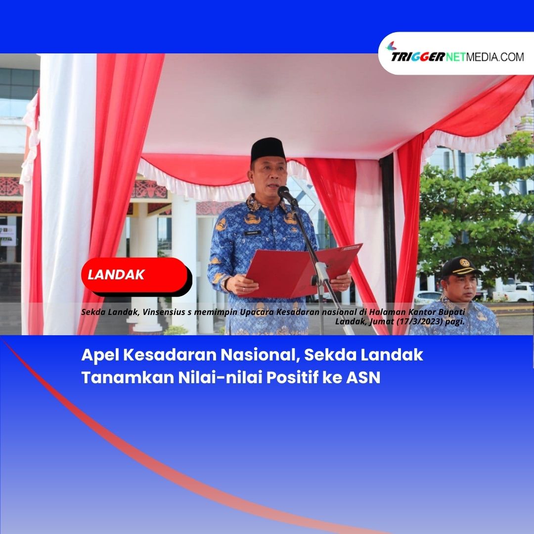triggernetmedia.com – Sekretaris Daerah (Sekda) Landak, Vinsensius mengapresiasi para ASN yang hadir mengikuti Upacara Kesadaran Nasional, yang secara rutin dilaksanakan satu bulan sekali.
