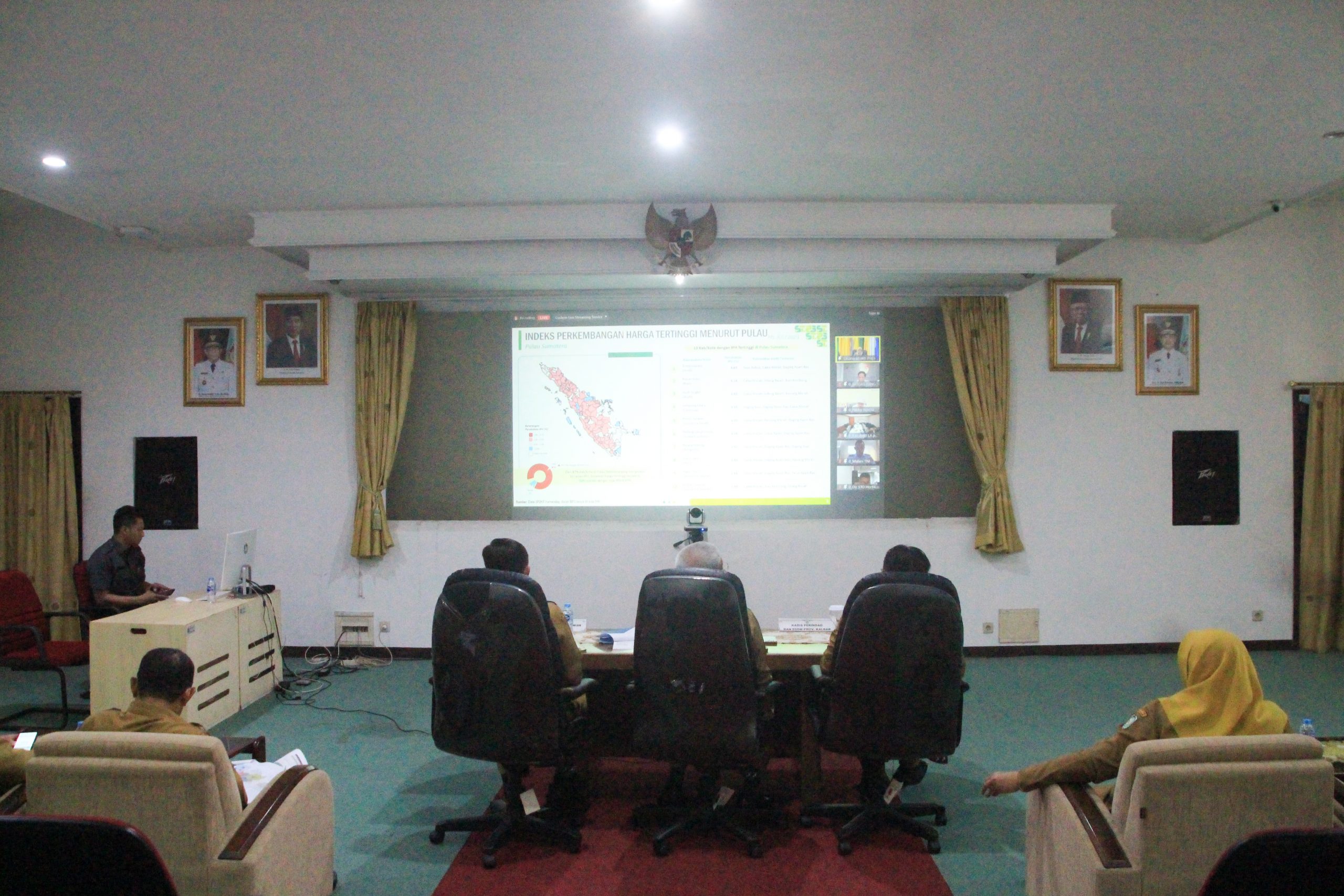 Sekretaris Daerah Provinsi Kalimantan Barat, Harisson, didampingi Kepala Biro Perekonomian Setda Prov. Kalbar Frans Zeno, dan Kepala Dinas Ketahanan Pangan Prov. Kalbar Heronimus Hero, mengikuti Rakor Pengendalian Inflasi Daerah secara daring yang dipimpin oleh Menteri Dalam Negeri