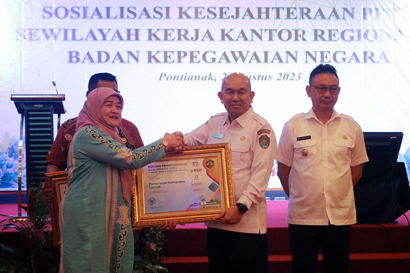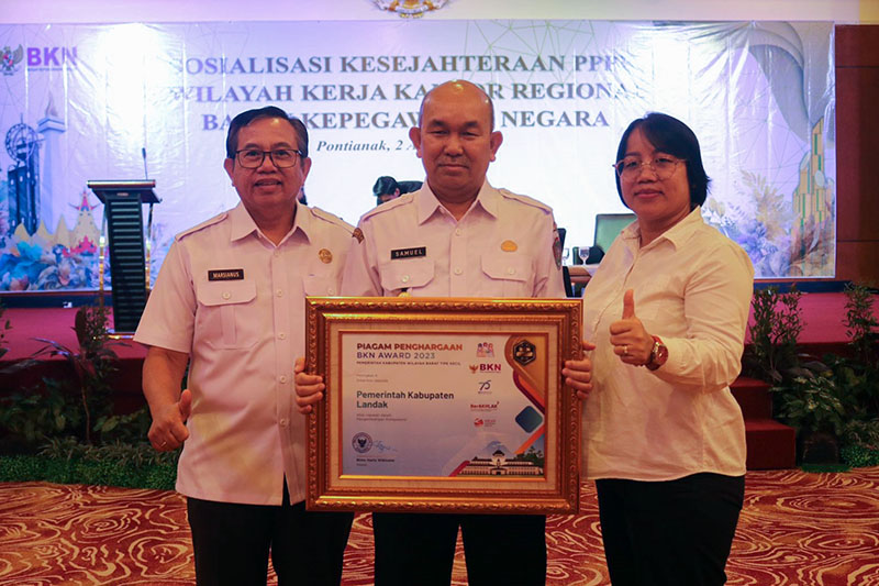 Penghargaan ini diserahkan secara langsung oleh Sekretaris Utama BKN Republik Indonesia, Imas Sukmariah, dan diterima dengan bangga oleh Pj. Bupati Landak, Samuel, dalam acara Sosialisasi Kesejahteraan PPPK se-Wilayah Kerja Kantor Regional V BKN yang berlangsung di Hotel Aston Pontianak, Rabu (2/8).