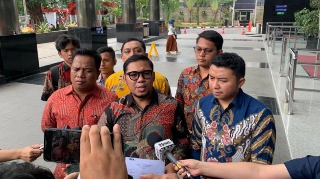 Persatuan Advokat Demokrasi Indonesia (PADI) melaporkan Anwar Usman ke KPK, Rabu (15/11/2023), buntut putusan MK yang meloloskan Gibran Rakabuming Raka menjadi calon wakil presiden. [Suara.com/Yaumal]