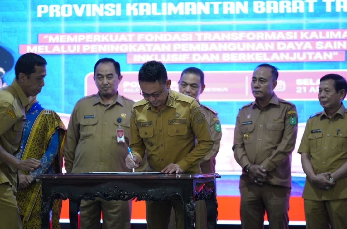 Wali Kota Pontianak Edi Rusdi Kamtono menandatangani berita acara pada Musrenbang Provinsi Kalbar.