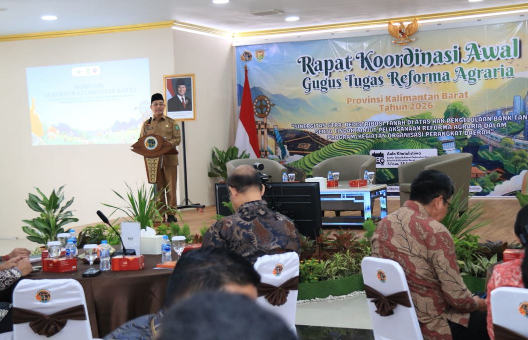triggernetmedia.com – Gubernur Kalimantan Barat, Ria Norsan, membuka Rapat Koordinasi Awal Gugus Tugas Reforma Agraria (GTRA) 2026 di Kantor Badan Pertanahan Nasional Kalbar, Selasa, 28 April 2026.